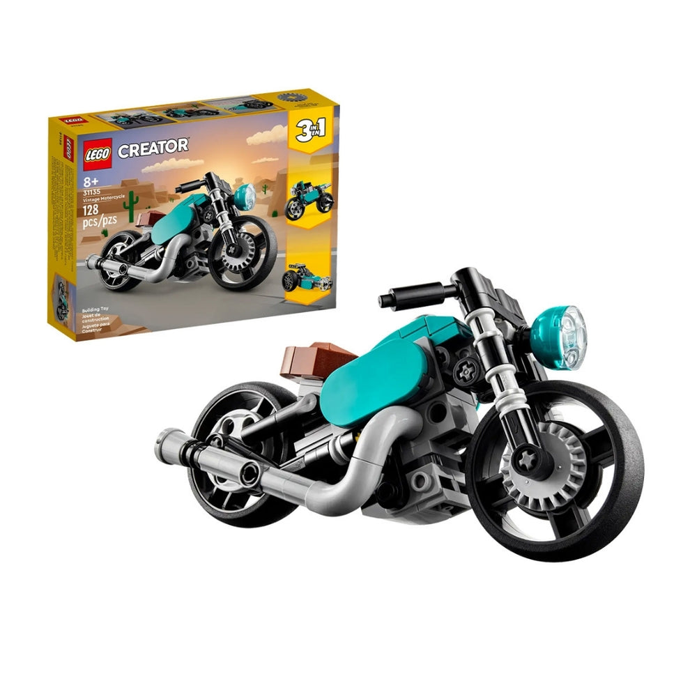 Khám phá những cuộc phiêu lưu đầy kịch tính với bộ đồ chơi mô tô đặc biệt, nơi các bé có thể trải nghiệm ba kiểu phương tiện độc đáo chỉ trong một bộ sản phẩm. Hãy sẵn sàng cho những chuyến đi đầy hứng khởi với chiếc mô tô lego cổ điển, một trong những lựa chọn đầu tiên trong bộ 3 trong 1 này. Với thiết kế mạnh mẽ và vẻ ngoài cổ điển, chiếc mô tô này sẽ đưa bạn xuyên qua những con đường nông thôn, cảm nhận sự tự do và tốc độ như chưa bao giờ có.